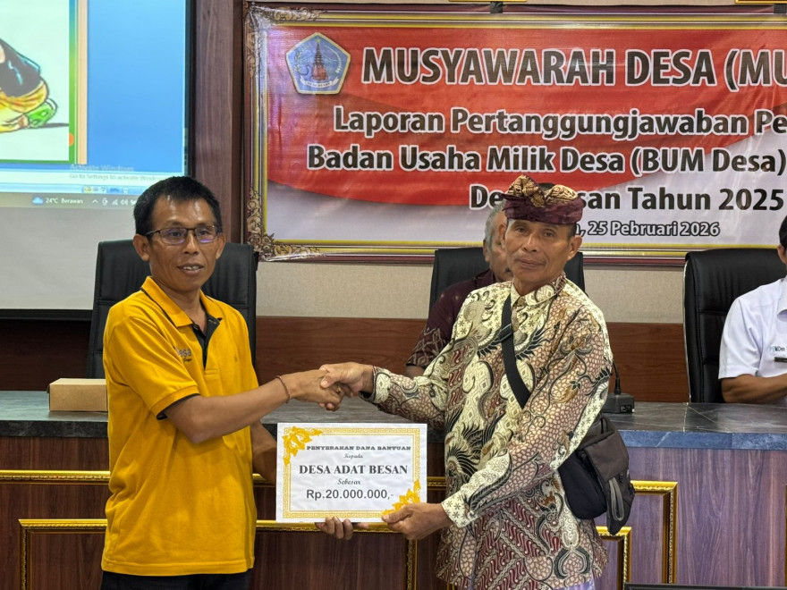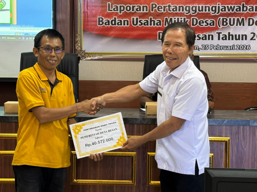 Pemerintah Desa Besan melaksanakan kegiatan Musyawarah Desa Khusus pada Rabu, 25 Pebruari 2026, bertempat di Ruang Rapat Graha Sabha Desa Besan. Kegiatan ini diselenggarakan sebagai forum musyawarah bersama dalam rangka membahas laporan pertanggungjawaban pengelolaan Badan Usaha Milik Desa (BUM Desa) Kertha Jaya Tahun 2025.